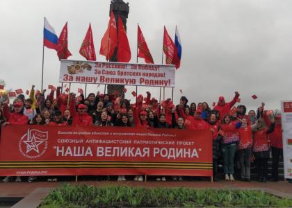 В последний раз гигантская копия Знамени Победы, пронесенная по нашей любимой, могучей тысячелетней державе в рамках автомарша «Наша Великая Родина», была развернута в тот же день в центре столицы перед памятником Маршалу Советского Союза Георгию Жукову, где под непосредственным руководством заместителя Председателя ЦК КПРФ Владимира Кашина проходила многолюдная торжественная церемония возложения венков и цветов к Могиле Неизвестного солдата и подножию монумента великому полководцу.