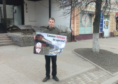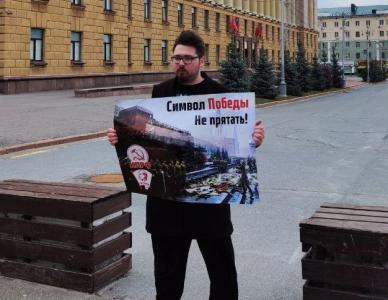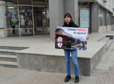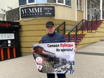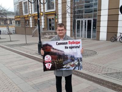 Коммунисты и комсомольцы Пензы вышли на центральную улицу города с серией одиночных пикетов против драпировки мавзолея В.И. Ленина на 9 мая. Из года в год власти пытаются прикрыть фанерой и тряпками один из важнейших символов Победы.