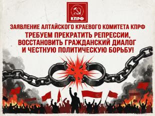 56 депутатов фракции КПРФ в Государственной Думе потребовали прекратить травлю партийных активистов, под этим обращением подписались тысячи муниципальных и региональных депутатов, около ста генералов и адмиралов, десятки общественных организаций по всей стране, возмущенных, в частности, ситуацией в Алтайском крае.