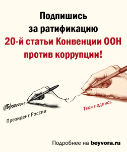 Как наши подписи помогут добиться ратификации статьи 20 Конвенции ООН против коррупции?