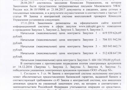 «В отношении закупок с номерами извещений: 0173200001416000109, 0373200004215000454, 0173200001416001436, 0173200001416001438, 0173200001416001440, 0173200001416001439, 0173200001416001437, ФАС России сообщает, что комиссией Московского УФАС России по контролю в сфере закупок проведены внеплановые проверки действий заказчиков при их осуществлении, в результате которых в действиях заказчиков установлены нарушения положений Федерального закона от 05.04.2013 №44-ФЗ «О контрактной системе в сфере закупок товаров, работ, услуг для обеспечения государственных и муниципальных нужд», - сообщается в ответе руководителя ФАС Игоря Артемьева на запрос КПРФ.