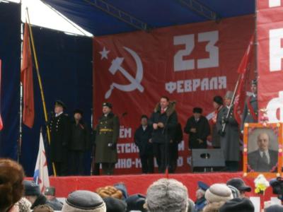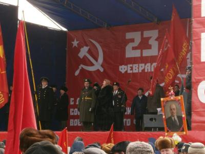 Мы, участники митинга, посвященного 95-летию Советской Армии и Военно- Морского Флота, приветствуем делегатов и гостей начавшего сегодня свою работу XV Съезда Коммунистической партии Российской Федерации и желаем успешного его проведения!