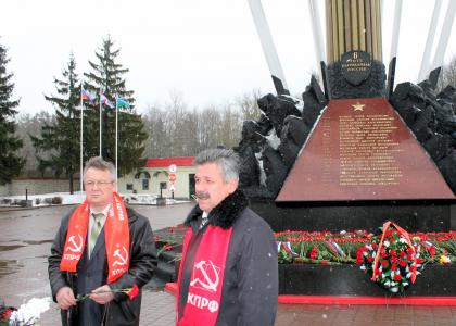 Возле памятника десантникам 6-ой роты в Пскове, делегация коммунистов Псковского обкома и горкома КПРФ провела импровизированный митинг, на котором выступили первый секретарь Псковского обкома КПРФ Александр Рогов, депутат Псковского областного Собрания коммунист Алексей Федоров, сослуживец и друг офицеров-десантников 6-й роты гвардии майор запаса Владимир Журавлев, заслуженный артист России, актер театра «На Таганке» Александр Цуркан. После их выступлений, коммунисты возложили к памятнику героям-десантникам венок от Псковского обкома КПРФ и цветы.