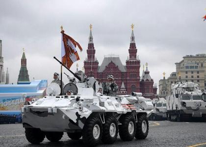 24. От РВСН идут "Ярсы" (тоже новое поколение, позже "Тополей"). Затем едут новые БТР "Бумеранг", проход техники завершается.
