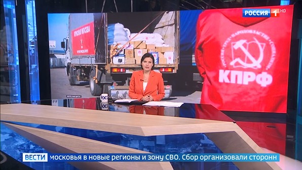ТВЦ предоставил освещению мероприятия 2 минуты 10 секунд эфира или 21% времени. Телеканал представил следующую цитату кандидата от КПРФ: Наша задача всей России, всего народа - поддержать свои родные, близкие территории. Поэтому тот груз, который сегодня, накануне рождения Красной Армии, отправляется, я думаю, что поднимет и настроение, и уверенность нашим бойцам. И нет сомнения: победа будет за нами.