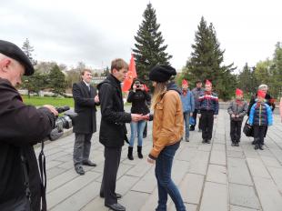 Лидер Омского Комсомола Алексей Байков вручил уже подросшим пионерам новенькие, алые Комсомольские билеты.