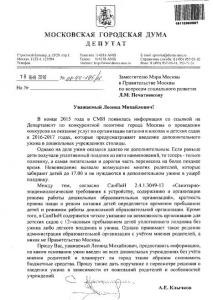 Руководитель фракции КПРФ в Мосгордуме Андрей Клычков направил обращение заместителю мэра Москвы по вопросам социального развития Леониду Печатникову по проблеме введения в детских садах столицы дополнительного ужина за счет разделения на две части полдника.