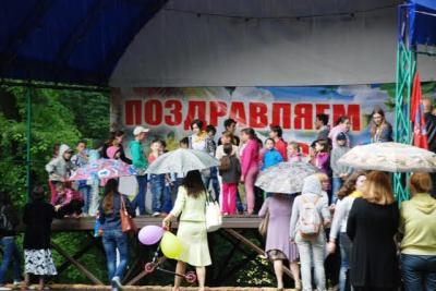Ребятам настолько понравилось мероприятие, что даже хлынувший дождь не разогнал их по домам, а только заставил укрыться под козырёк сцены.