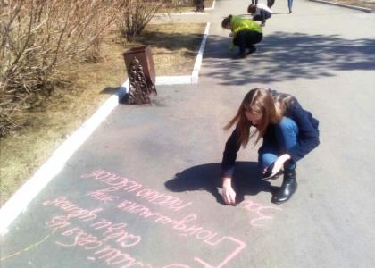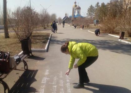 Во дворе средней образовательной школы № 64 города Оренбурга состоялся посвященный Дню космонавтики конкурс среди учеников младших классов. Учащиеся подарили школе свои стихи, написав их мелом на асфальте. Здесь можно было увидеть строчки про луну, звёзды, космос и конечно про первого космонавта Юрия Гагарина.