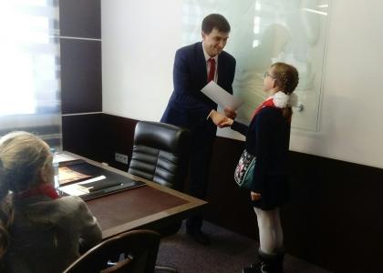 вручил пионерам благодарности за активное участие в конкурсе. После этого