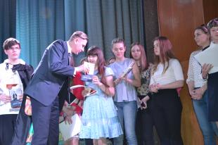 секретарём ЦК ЛКСМ РФ по агитации и пропаганде Евгением Дроздовым она вручила