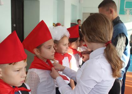 В школе села Целинное Ширинского района много лет сохраняется пионерская дружина. Каждый год в ряды пионеров вступают целые классы. Вот и сейчас сразу 27 детей надели алые галстуки.