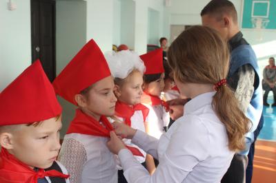 В школе села Целинное Ширинского района много лет сохраняется пионерская дружина. Каждый год в ряды пионеров вступают целые классы. Вот и сейчас сразу 27 детей надели алые галстуки.