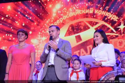 Ю.В. Афонин также выразил благодарность руководителю проекта, председателю оргкомитета конкурса «Земля талантов» Надежде Воронцовой, ведущим конкурса актеру театра и кино Андрею Гаркунову, певице Софие Фисенко, певцу и шоумену Сергею Крылову и юному артисту Владимиру Солодкову. Он поблагодарил и председателя жюри, заслуженную артистку Российской Федерации Татьяну Александровну Судец – большого друга пионерской и комсомольской организации и нашей партии.