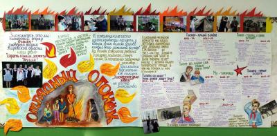 В номинации «Пионер – всем ребятам приер», где команды представили стенгазеты призовые места заняли команды: