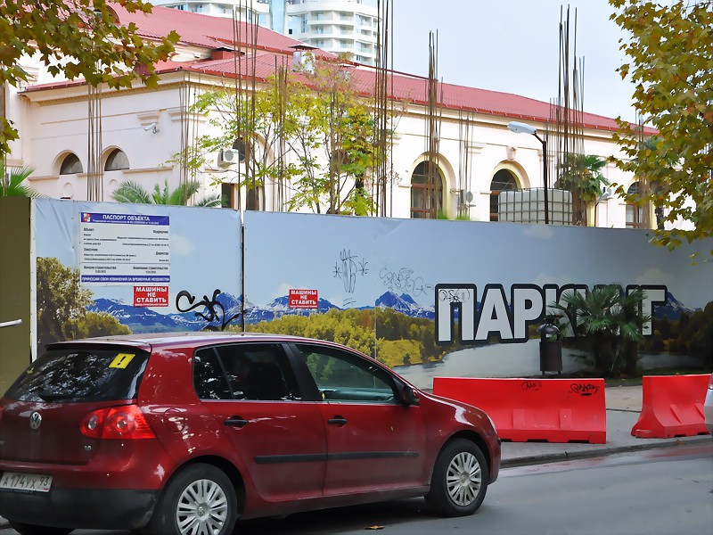 Великолепные виды и панорамы старого города катастрофически исчезают с сочинских улиц. Остались последние дни, когда мы можем любоваться зданием бывшего кинотеатра «Стерео» с улицы Орджоникидзе. Прикрываясь проблемой автотранспорта, ненасытные кубанские чиновники решили воздвигнуть перед зданием театра очередной шедевр архитектурной мысли – многоуровневую автостоянку. Вырытый под основанием старого здания подземный этаж паркинга, торговые площади, офисы из стекла и бетона, изуродуют еще одно знаковое место курорта. Кинотеатр был построен в августе 1953 г. по приказу Сталина в подарок Сочи. В нем было два зала – Белый и Голубой. 19 января 1975 г. один из залов переоборудовали для стереопоказа, с этого же года был переименован в «Стерео». В 70-ые годы среднемесячное посещение составляло 54 тысячи зрителей. Залы его стали именоваться «Стерео» и «Ореол». В кинотеатре постоянно действовала выставка голограмм. С приходом к власти в городе колхозной интеллигенции, место культуры и отдыха потеряло свое назначение и теперь там базируется ГК «Олимпстрой».