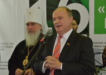 В торжественной церемонии открытия форума принял участие лидер КПРФ Г.А. Зюганов. В своем выступлении Геннадий Андреевич подчеркнул, что является не только гостем, но и участником почти всех крупных книжных выставок-ярмарок. «Я хочу, чтобы вы немножко повыше подняли свои головы и не унывали, - сказал лидер КПРФ. – Книга – это живое существо, и никаким электронным аналогам ее не победить и не убить».