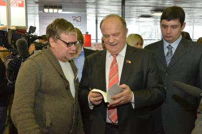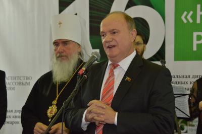 В торжественной церемонии открытия форума принял участие лидер КПРФ Г.А. Зюганов. В своем выступлении Геннадий Андреевич подчеркнул, что является не только гостем, но и участником почти всех крупных книжных выставок-ярмарок. «Я хочу, чтобы вы немножко повыше подняли свои головы и не унывали, - сказал лидер КПРФ. – Книга – это живое существо, и никаким электронным аналогам ее не победить и не убить».