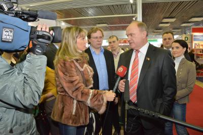 «Я вас от души поздравляю с открытием выставки. Со своей стороны максимально буду способствовать тому, чтобы облегчить нелегкую жизнь издателей и читателей. Удачи всем вам!» - так завершил свое выступление лидер КПРФ.