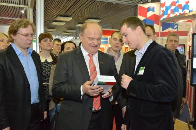 Лидер КПРФ посетил павильон «Алгоритма», осмотрел представленные книги и оставил автограф на память. В свою очередь, коммерческий директор издательства В.Б. Юсупов вручил Г.А. Зюганову энциклопедию «Сталин».