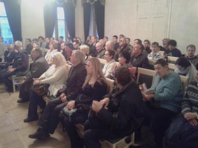 В конференц-зале, где фактически яблоку негде было упасть, присутствовали как молодые люди (главным образом, из спортивного клуба Приморского РК КПРФ и Русского Лада), так и заслуженные ветераны.