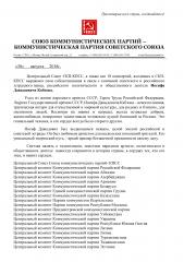 Центральный Совет СКП-КПСС, а также все 18 компартий, входящих в СКП-КПСС выражают свои соболезнования в связи с кончиной советского и российского эстрадного певца, российского политического и общественного деятеля Иосифа Давыдовича Кобзона.