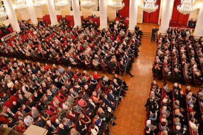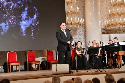 обратился руководитель общероссийского общественного движения «Русский лад» В.С. Никитин. «Мы проводим литературно-музыкальный вечер в этом зале не случайно. Это историческое место. Здесь