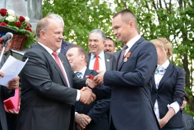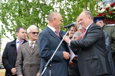 От имени ЦК КПРФ Г.А. Зюганов вручил СПК «Звениговский» почетную грамоту. Ряд работников хозяйства был удостоен наград Компартии. Завершился митинг вручением партийных билетов вновь вступившим в ряды КПРФ товарищам. Затем Геннадий Андреевич осмотрел производство СПК «Звениговский».