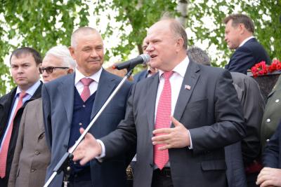 Трудовой коллектив хозяйства тепло встретил Геннадия Андреевича. После возложения цветов к памятнику В.И. Ленину на главной площади состоялся многолюдный митинг. Выступая перед его участниками, лидер КПРФ назвал «Звениговский» островком социализма. «Благодарю вас за верность, за стойкость, за умение работать, за ваши достижения, за то, что во главе с Иваном Ивановичем Казанковым вы сумели сохранить свое уникальное хозяйство».