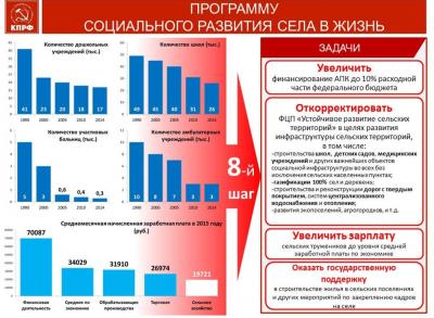 - принять закон «О социальном развитии села» и государственную целевую программу «Развитие социальной сферы села до 2030 года»;