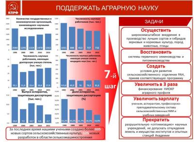 - создать условия для развития сельскохозяйственного отделения РАН, приняв соответствующую программу;