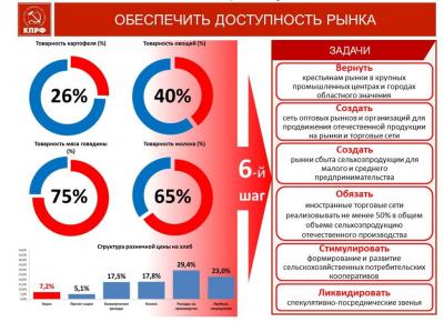 Для того, чтобы обеспечить население качественным продовольствием, потребуется системная, последовательная реализация поставленных КПРФ задач, наиболее важными из которых являются: