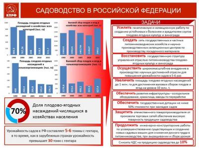 У нас сегодня 70% садов находится в личных подсобных хозяйствах. ЛПХ дают 76% валового сбора плодов и ягод. Но попробуйте это продать! Сегодня нет ни заготконтор, ни кооперативов. Так и пропадает огромное количество урожая, никак не участвует в обеспечении продовольственной безопасности.