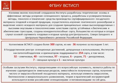 Хозяева сегодняшнего форума, Всероссийский селекционно-технологический институт садоводства и питомниководства, как и многие другие сельскохозяйственные научные организации имеют уникальные достижения.