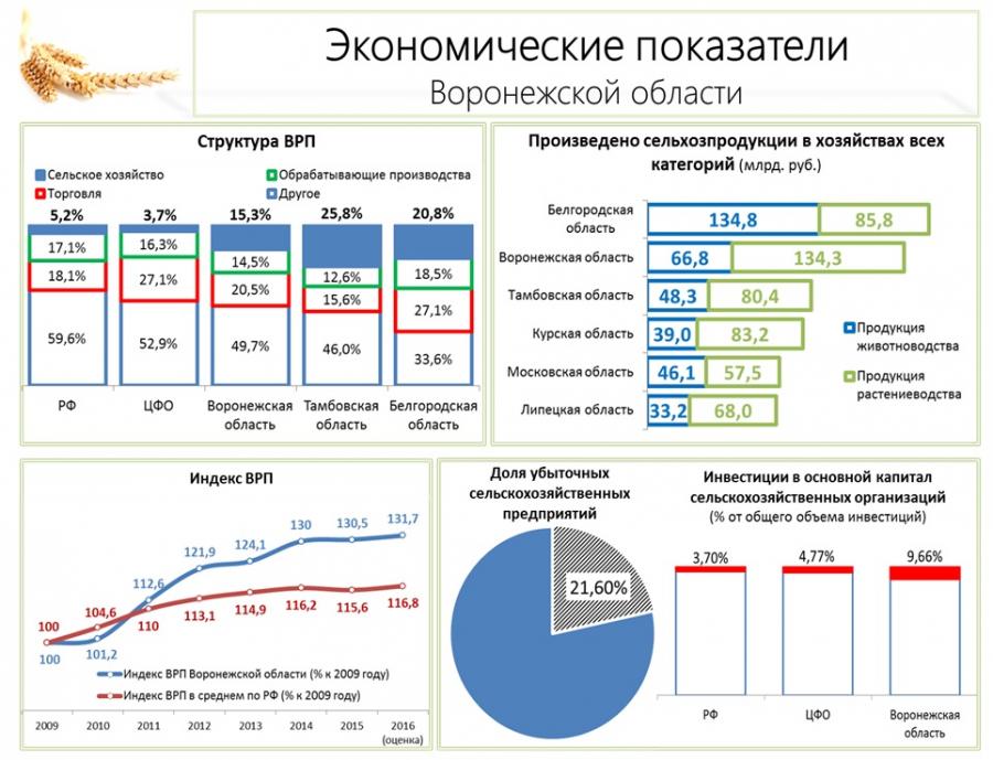 уровне 5,2% - почти трехкратная разница. Сельское хозяйство Воронежской
