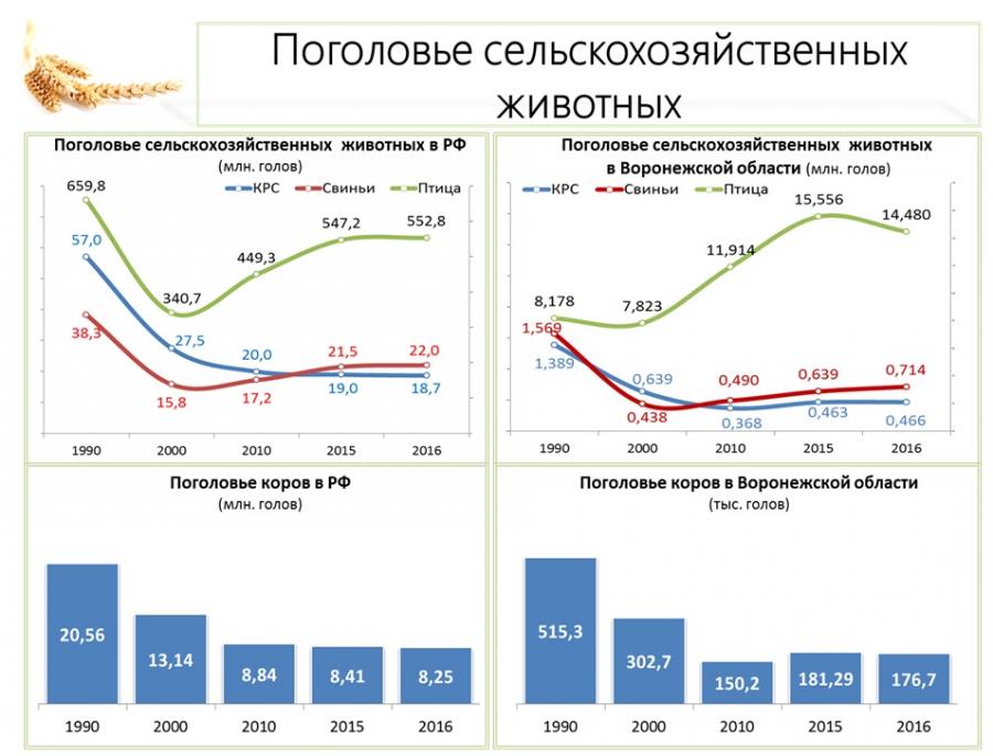 сопоставимую с общей по стране динамику снижения поголовья - в 2,8 раза по КРС,