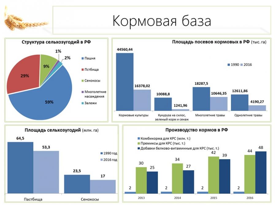 производством кормов (63 тыс. га зерновых и кормовых посевов), откормом (до 60