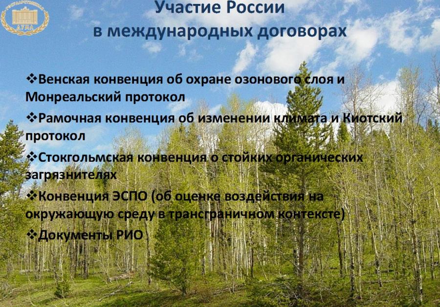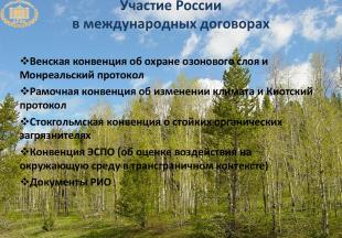 Россия является активной стороной многих международных договоров и соглашений в области охраны окружающей среды: