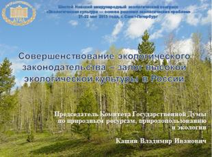 Выступление заместителя Председателя ЦК КПРФ, Председателя комитета ГД по природным ресурсам, природопользованию и экологии, Академика РАСХН В.И. Кашина на VI Невском международном экологическом конгрессе, состоявшемся 21 мая 2013 года в г. Санкт-Петербург на тему: «Совершенствование экологического законодательства – залог высокой экологической культуры в России».