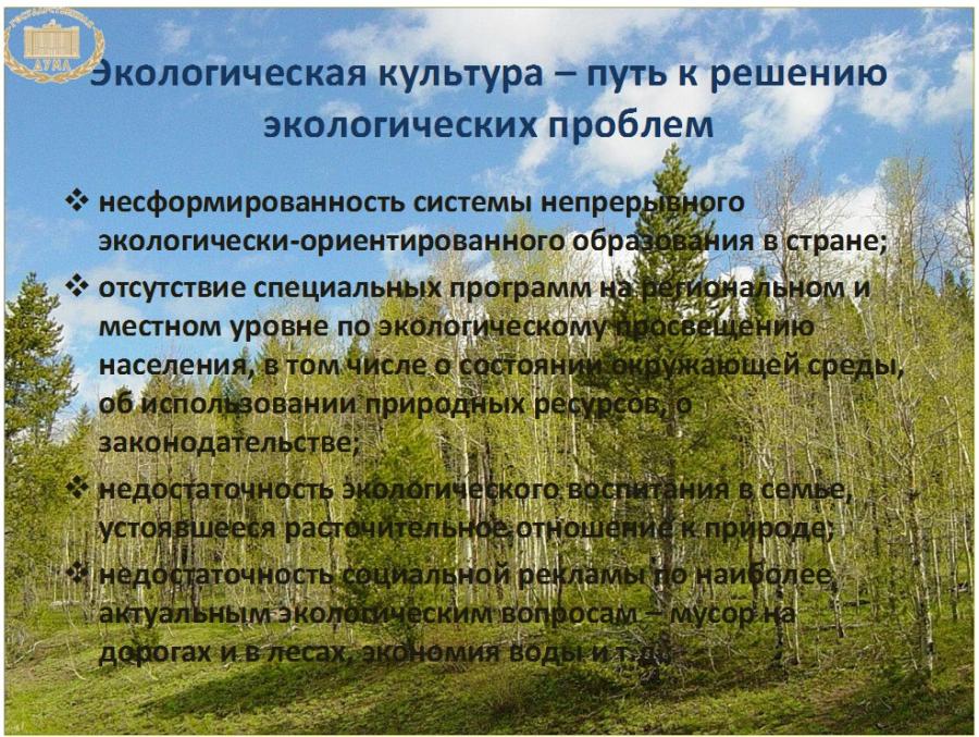 несформированность системы непрерывного экологически-ориентированного образования в стране;