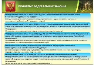 1. Федеральный закон от 14 июня 2012 года № 74-ФЗ «О внесении изменений в Закон Российской Федерации «О недрах».