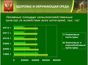 - дальнейшее сокращение общей площади сельскохозяйственных угодий (сегодня заброшено более 41,5 млн. гектар пахотных и более 90 млн. гектар пастбищных угодий);