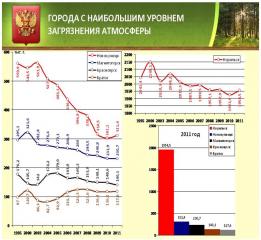 Также следует обратить внимание, по данным Министерства природных ресурсов и экологии Российской Федерации в 2011 году в России насчитывалось 119 городов с высоким и очень высоким уровнем загрязнения атмосферного воздуха. При этом в 2012 году их стало уже 138.