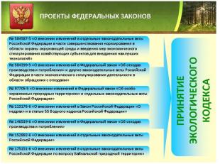 1. Проект федерального закона № 584587-5 «О внесении изменений в отдельные законодательные акты Российской Федерации в части совершенствования нормирования в области охраны окружающей среды и введения мер экономического стимулирования хозяйствующих субъектов для внедрения наилучших технологий».