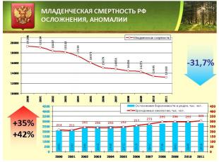 Взгляните на статистику по младенческой смертности. В период с 2000 по 2011 год произошло снижение на 31,7%. Но за аналогичный период значительно возросло количество случаев осложнений беременности и родов, а также выявленных врожденных аномалий – на 35 и 41,5 процент соответственно.