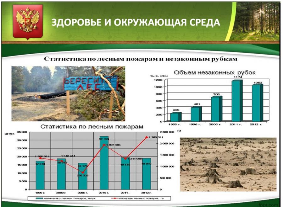 Расчеты по данным Организации по сельскому хозяйству и продовольствию ООН (FAO UN) показывают, что доля случаев лесных пожаров на территории Российской Федерации может достигать 27% от числа случаев пожаров в лесах мира. Ущерб от лесных пожаров, вредных организмов и других неблагоприятных факторов значительно превышает величину общих расходов на охрану, защиту и воспроизводство лесов.
