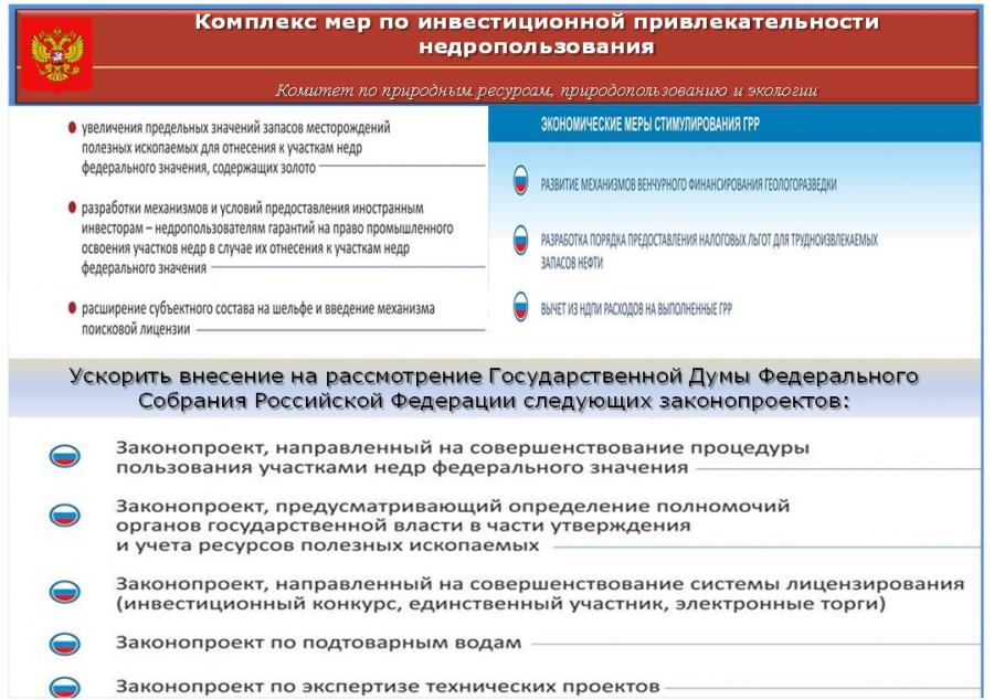 Необходимо принять комплекс мер по инвестиционной привлекательности недропользования, в частности: