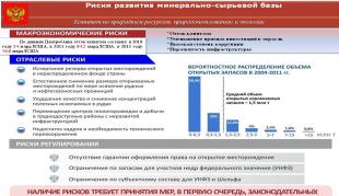 Согласно аналитическим прогнозам международных агентств, доля шельфа к 30-му году в добыче и нефти и газа будет, достаточно определяющей, достаточно важной для того, чтобы сохранить тот уровень добычи, который считается необходимым для обеспечения национальной энергетической безопасности страны.