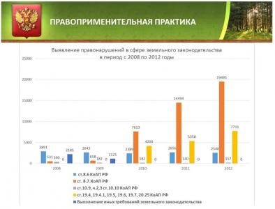 Даже административное и уголовное законодательство не обеспечивает исполнение закона в должной степени. Так, не смотря на усиление в 2009 году ответственности по статье 8.7 КоАП (невыполнение обязанностей по рекультивации земель, обязательных мероприятий по улучшению земель и охране почв), в период с 2009 по 2012 годы количество таких нарушений выросло с 658 до 19495 случаев.