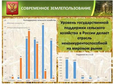 Уровень государственной поддержки делает российское сельское хозяйство неконкурентоспособным, особенно в условиях ВТО.